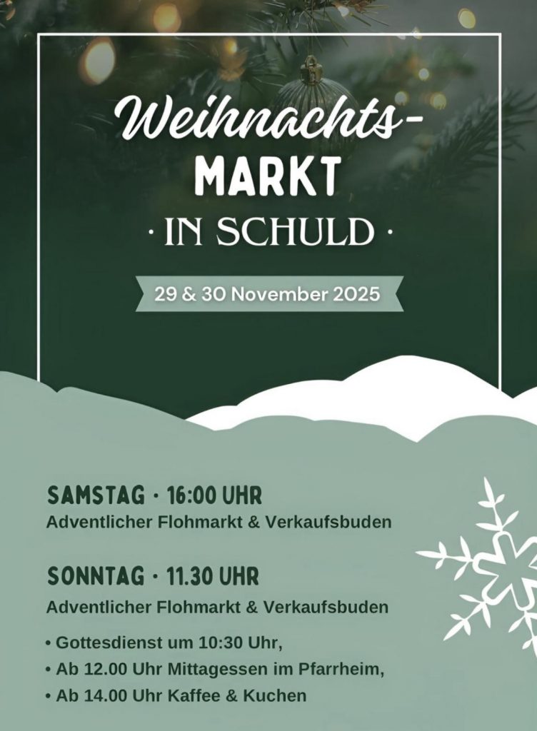 Nachtrag: Um 17:30 Uhr bietet die Kita Schuld zur Einstimmung offenes Singen auf dem Kirchenplatz an. Die Kita Schuld freut sich über alle, die mitsingen möchten!