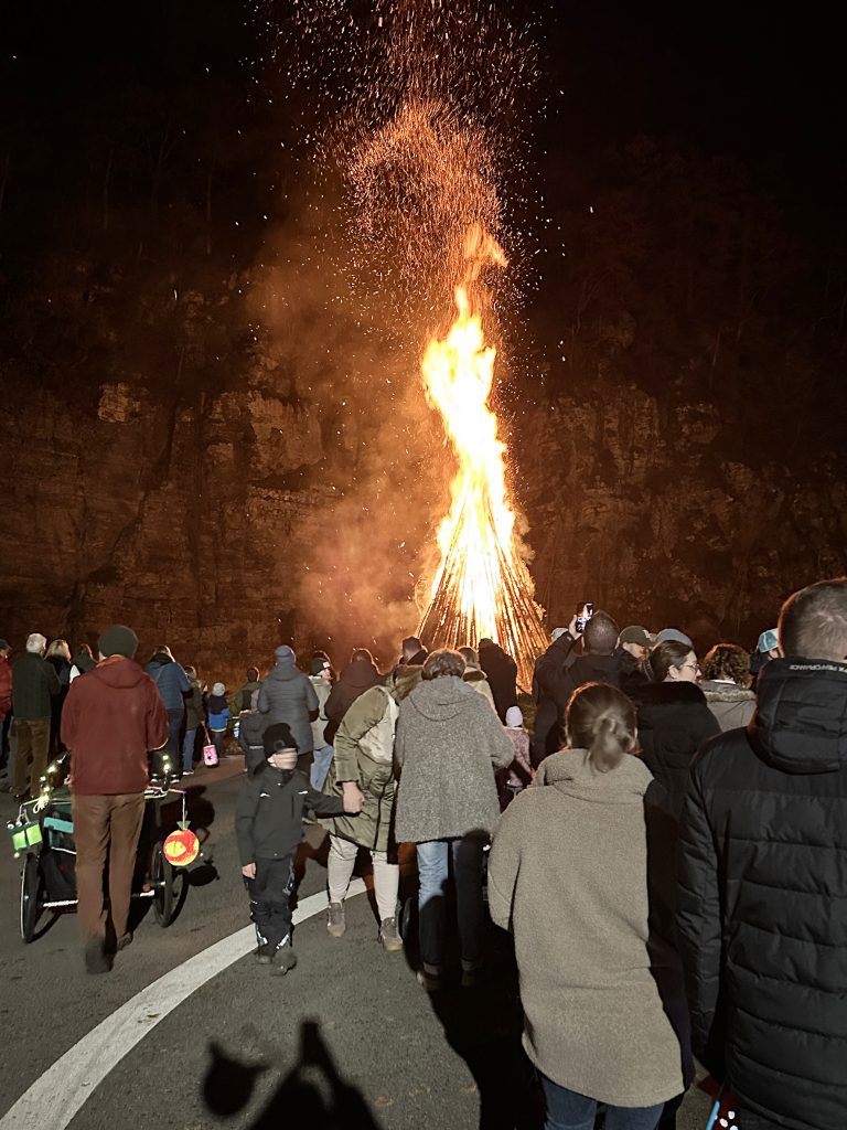 Angeführt von Sankt Martin – dargestellt von Niklas Michels – auf seinem Pferd, zog der farbenfrohe Laternenzug über die Hauptstraße, Domhofstraße, Stausten und Schulstraße bis hin zum Martinsfeuer, das eindrucksvoll den Nachthimmel erleuchtete. Ein besonderer Dank gilt Lisa Caspari aus Rodder, die das Pferd zur Verfügung stellte und damit das traditionelle Martinsbild komplettierte.